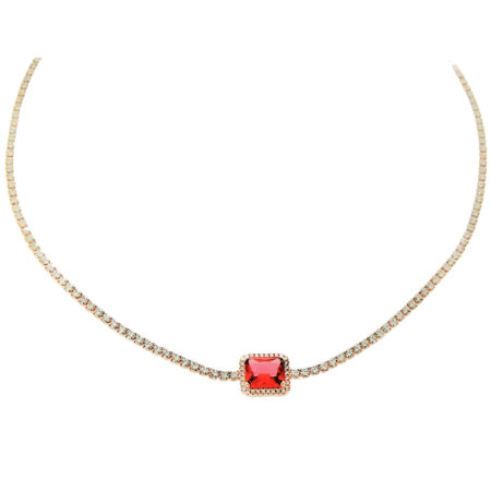 Κολιέ Ασημένιο Ροζ Χρυσό Σειρέ Ριβιέρα Κόκκινη Πέτρα Με Ζιργκόν
