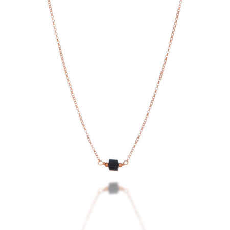 Κολιέ Ασημένιο Ροζ Χρυσό Με Μαύρο Κύβο Swarovski