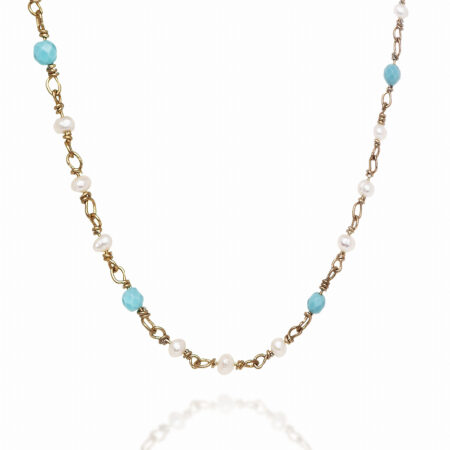 Ροζάριο Ασημένιο Επίχρυσο Με Πέτρες Τιρκουάζ Και Μαργαριτάρια