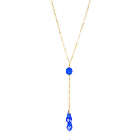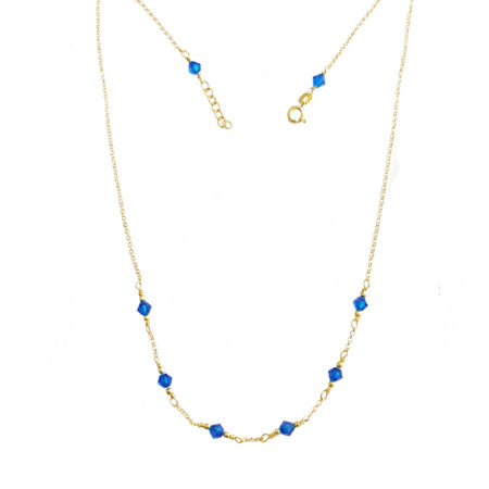 Κολιέ Ασημένιο Επίχρυσο Με Μπλε Κρυστάλλους