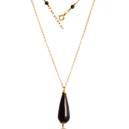 Κολιέ Ασημένιο Επίχρυσο Με Μαύρο Όνυχα Drop