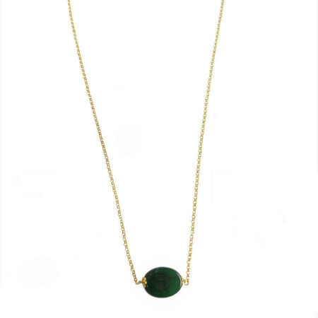 Κολιέ Ασημένιο Επίχρυσο Με Πράσινη Αχάτη