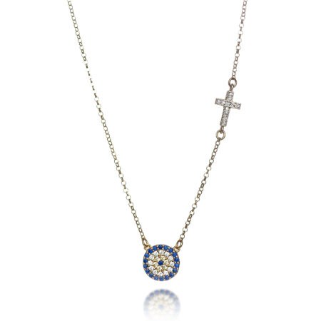 Κολιέ Ασημένιο Με Ματάκι Και Σταυρό