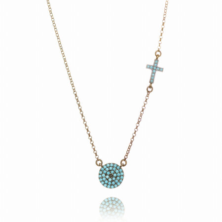 Κολιέ Ασημένιο Επίχρυσο Με Στρογγυλό Μοτίφ Και Σταυρό