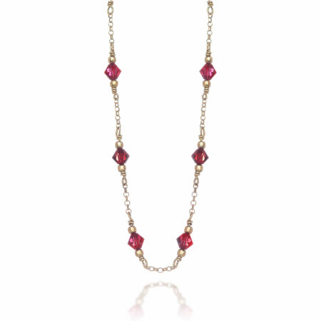 Κολιέ Ασημένιο Επίχρυσο Με Φούξια Κρυστάλλους