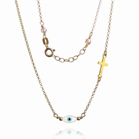 Κολιέ Ασημένιο Επίχρυσο Με Φίλντισι Ματάκι Και Σταυρό