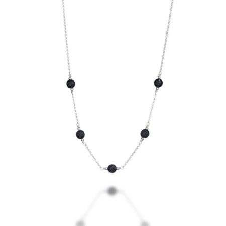 Κολιέ Ασημένιο Με Μαύρες Πέτρες Όνυχα