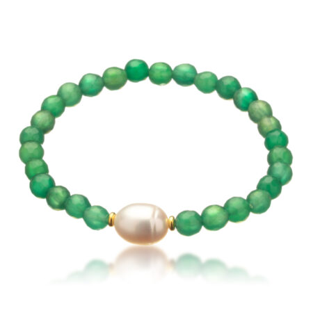 Βραχιόλι Με Ορυκτές Πέτρες Πράσινου Αχάτη Και Μαργαριτάρι