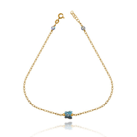 Ασημένιο Επίχρυσο Βραχιόλι Ποδιού Με Θαλασσί Πεταλούδα