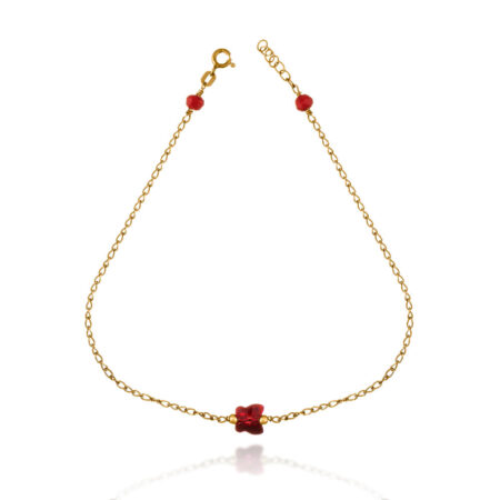 Ασημένιο Επίχρυσο Βραχιόλι Ποδιού Με Κόκκινη Διαφανής Πεταλούδα