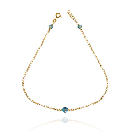 Ασημένιο Επίχρυσο Βραχιόλι Ποδιού Με Θαλασσί Κρύσταλλο