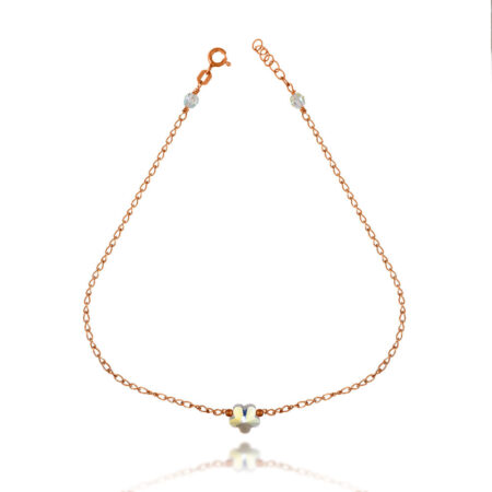 Ασημένιο Ροζ Χρυσό Βραχιόλι Ποδιού Με Λευκή Πεταλούδα