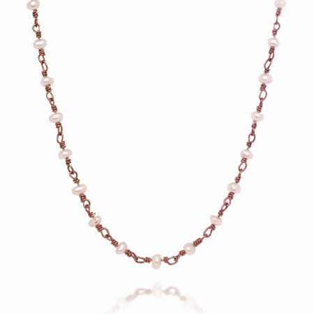 Κολιέ Ροζάριο Ασημένιο Ροζ Χρυσό Με Μαργαριτάρια