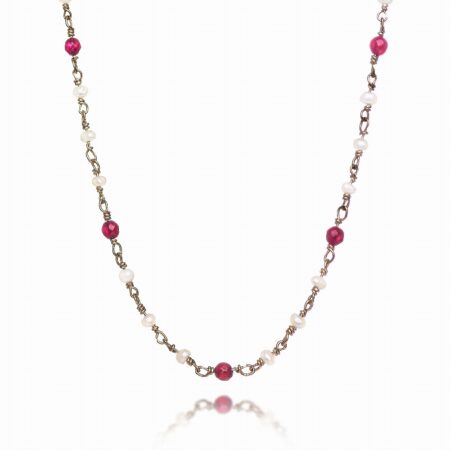 Ροζάριο Κολιέ Ασημένιο Επίχρυσο Με Μαργαριτάρια Και Αχάτες