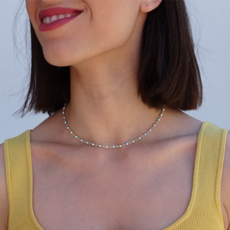 Ροζάριο Κολιέ Ασημένιο Επίχρυσο Με Τιρκουάζ Πέτρες