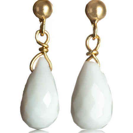 Σκουλαρίκια Ασημένια Επίχρυσα Με Λευκούς Όνυχες Σε Σχήμα Σταγόνας