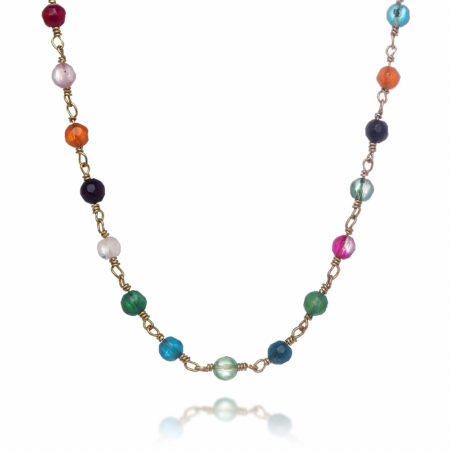 Κολιέ Ασημένιο Επίχρυσο Ροζάριο Με Ημιπολύτιμες Πέτρες