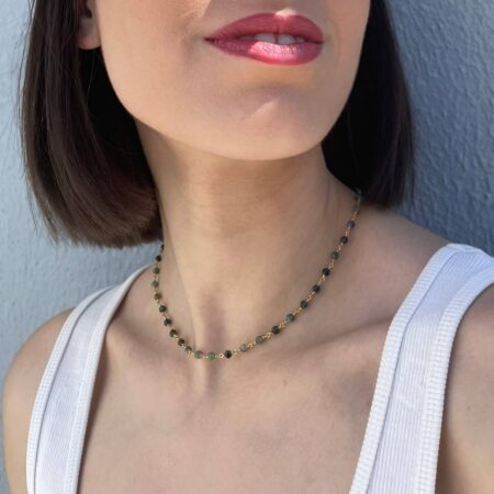 Ροζάριο Κολιέ Aσημένιο Επίχρυσο Mε Σμαράγδια