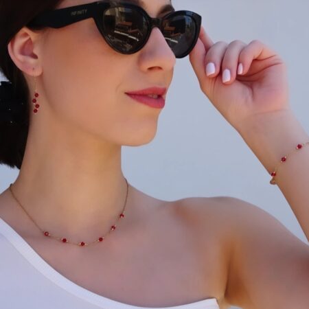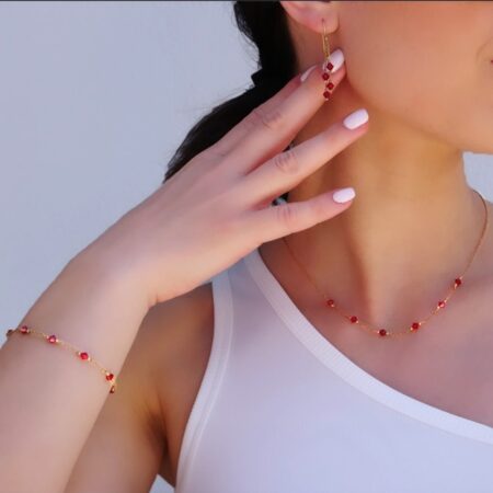 ΣΕΤ Κολιέ,Βραχιόλι,Σκουλαρίκια Με Κόκκινους Κρυστάλλους