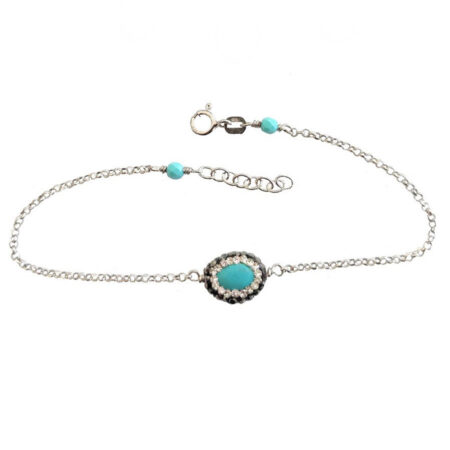 Ασημένιο Βραχιόλι Με Λευκό Κρύσταλλο Και Πέτρες Τιρκουάζ