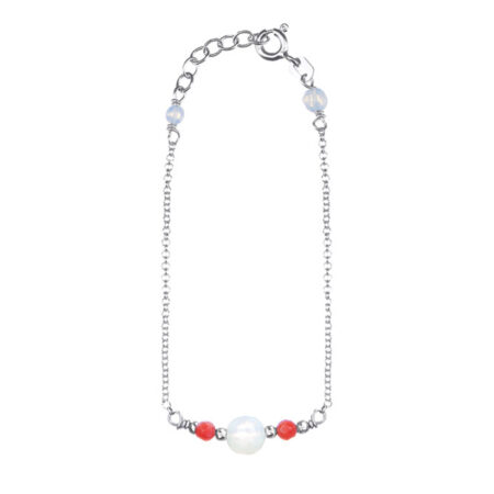 Ασημένιο Βραχιόλι Με Φεγγαρόπετρα Και Πέτρες Κοράλλι