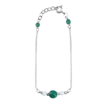 Ασημένιο Βραχιόλι Με Πράσινο Αχάτη Και Λευκούς Όνυχες