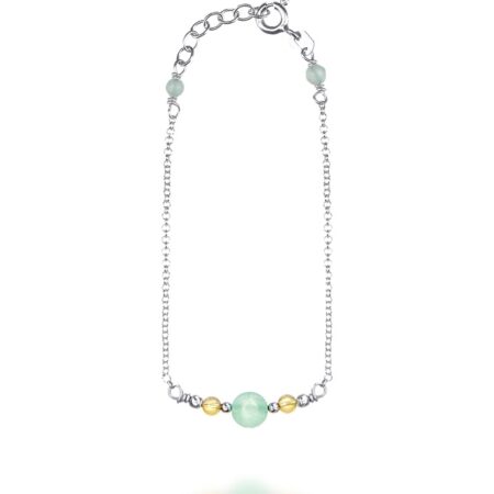 Ασημένιο Βραχιόλι Με Πράσινο Αχάτη Και Επίχρυσες Μπίλιες