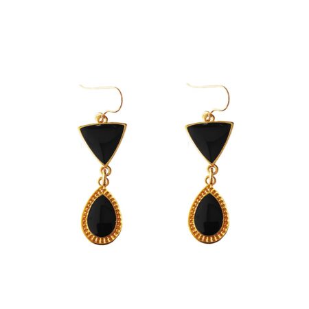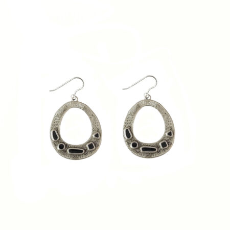 Μεταλλικοί Κρίκοι Με Μαύρο Σμάλτο Ethnic Style Και Ασημένια Γαντζάκια
