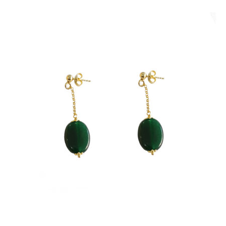 Ασημένια Επίχρυσα Σκουλαρίκια Με Πράσινους Αχάτες