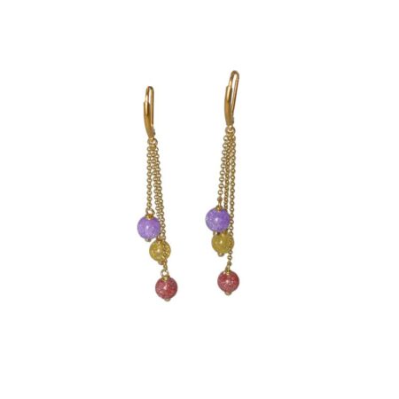 Ασημένια Επίχρυσα Σκουλαρίκια Κρεμαστά Με Crushed Stones