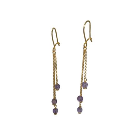 Ασημένια Επίχρυσα Σκουλαρίκια Κρεμαστά Με Αμέθυστους