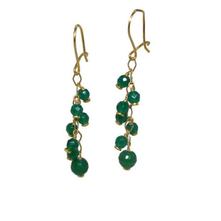 Ασημένια Επίχρυσα Σκουλαρίκια Κρεμαστά Με Πράσινους Αχάτες