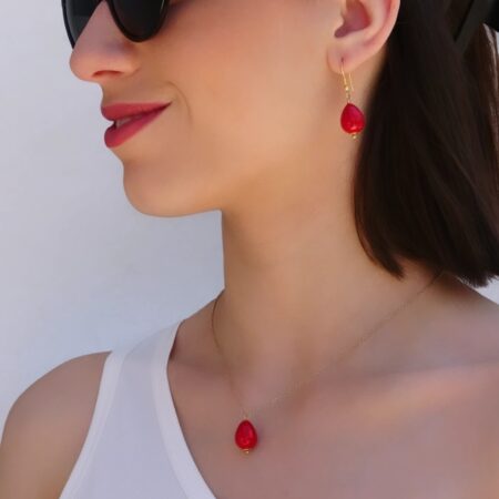 • Σετ Ασημένιο Επίχρυσο Με Κόκκινες Πέτρες Αχάτη Drops