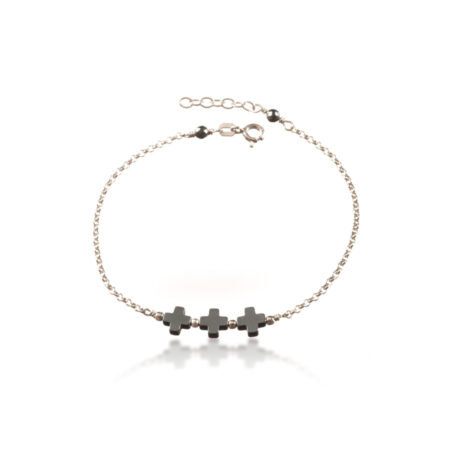 Βραχιόλι Ασημένιο Με Σταυρούς Από Αιματίτη