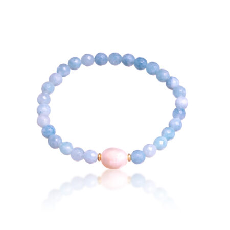 Βραχιόλι Με Θαλασσί Πέτρες Jade Και Μαργαριτάρι
