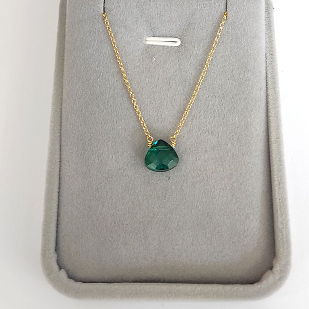 Κολιέ Ασημένιο Επίχρυσο Με Πράσινο Κρύσταλλο