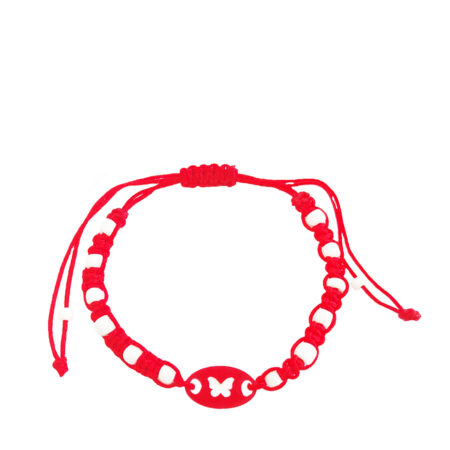 Βραχιόλι Μάρτης Κόκκινο Μακραμέ Με Άσπρες Μπίλιες Και Κόκκινη Πεταλούδα